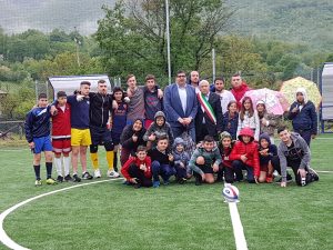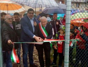 Camerata Nuova – E’ stato inaugurato ieri a Camerata Nuova il nuovo e ristrutturato Campo Sportivo Comunale. La pioggia non è certo riuscita a fermare gli entusiasmi dei piccoli, dei cittadini e delle istituzioni per questa importante occasione. Il taglio del nastro a doppia mano è stato affidato alle mani del Sindaco Settimio Liberati e al consigliere regionale Rodolfo Lena, già componente della commissione regionale nel Lazio per la Sanità e nuovamente rieletto nelle ultime elezioni amministrative. Presenti anche amministratori locali, rappresentanze di Roccagiovine (Antonella Giori), Cineto Romano (Amedeo Latini). “Si tratta di un risultato importante – ha affermato il sindaco di Camerata Nuova Settimio Liberati – al quale abbiamo dedicato molte energie ed ora dopo tanti anni di abbandono la struttura sportiva con parco giochi annesso è tornata alla fruibilità della cittadinanza. Una scelta – spiega Liberati – che è stata portata avanti per incrementare l’interesse sul nostro comune, evitare uno spopolamento, e fornire un luogo di aggregazione sociale per un sano divertimento dedicati ai nostri ragazzi. Colgo l’occasione – ha concluso il Sindaco – per ringraziare i numerosi intervenuti per questo importante traguardo di