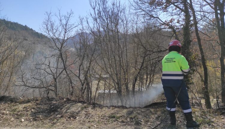 Incendio a Pietrasecca nei pressi del cimitero, il gruppo di VPC di Carsoli in azione