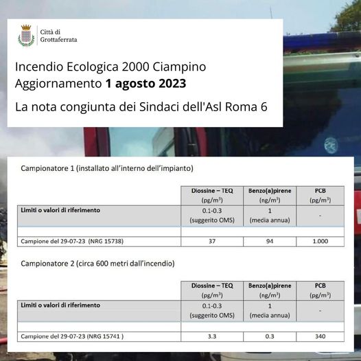 ROMA – “Sono pervenuti i dati relativi anche alla seconda centralina posta a circa 600 mt dal sito. Il valore rilevato dalla campionatura è di 10 volte inferiore al rilevamento del primo sito.