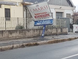 Carsoli – Un incidente automobilistico si è verificato nel pomeriggio odierno  in via Roma alle porte del centro urbano di Carsoli. Per cause ancora in corso di accertamento un veicolo è uscito dalla sede stradale ed è finito contro un indicatore pubblicitario in ferro ancorato a terra. Sul posto è giunta una pattuglia dei Carabinieri per i rilievi di rito. Fortunatamente nessun passante si trovava sul marciapiede in cui la vettura è andata a schiantarsi rimbalzando poi in seguito all’impatto sull’altra parte della carreggiata. Nessuna altra vettura, sempre fortunatamente è rimasta coinvolta nell’incidente stesso.