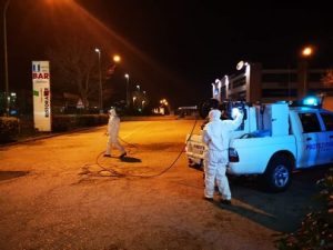 Carsoli – Il gruppo volontari di Protezione civile di Carsoli è impegnato in queste ore notturne nelle attività di disifezione e sanificazione delle strade pubbliche cittadine. Gli interventi riguardano anche le parti esterne degli edifici, con particolare attenzione in quelli nella zona commerciale ove in questi frangenti si riscontra l’attività.