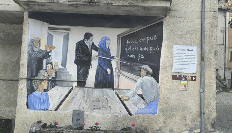TUFO DI CARSOLI – Nell’ambito delle manifestazioni della nona edizione di “Intonaci” a Tufo di Carsoli, quest’anno particolare tributo alla memoria del Maestro Alberto Manzi, la cui madre era per l’appunto originaria del bellissimo borgo noto ormai come il Paese delle arti. Negli otto anni scorsi il borgo è stato interessato da un progetto di alto livello, che ha visto un susseguirsi di artisti cimentarsi nella realizzazione di murales e di sculture che oggi costituiscono un patrimonio per questa realtà frazionale del comune di Carsoli. Un percorso intriso di significati, di colori che hanno vivacizzato grigie facciate delle case e caratterizzato il posto come punto di riferimento per una esperienza che prosegue e migliora ogni anno.