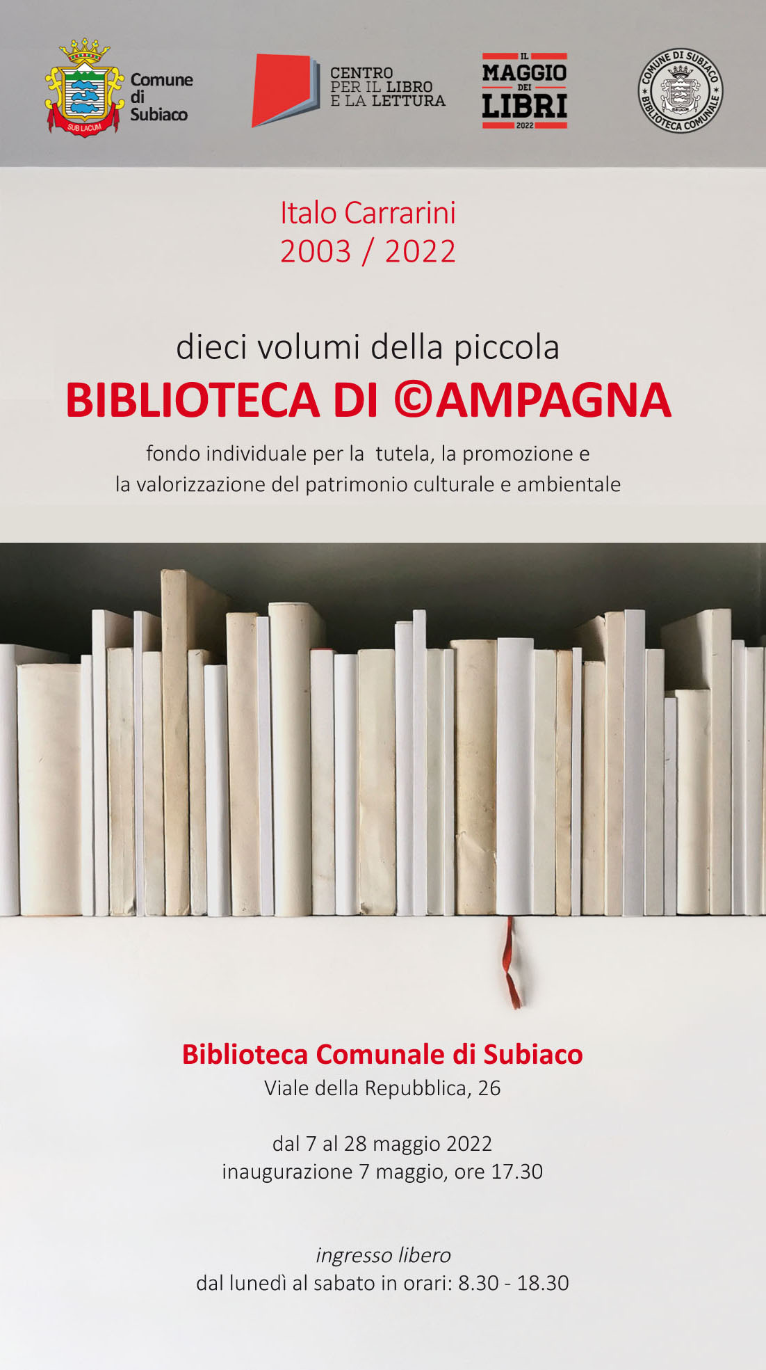 Subiaco – Il 7 maggio alle 17:30 verrà inaugurata, presso la Biblioteca Comunale di Subiaco, la nuova installazione dell’artista tiburtino Italo Carrarini, Biblioteca di ©ampagna, che rimarrà poi aperta al pubblico fino al 28 maggio, con orario 8:30-18:30, dal lunedì al sabato.