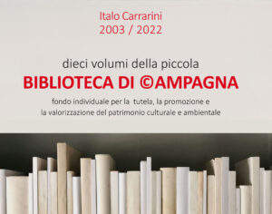 «[…] l’arte di Italo Carrarini – soprattutto quella recente – si fonda su tre elementi cardinali: l’effetto del tempo; la concezione “pragmatica” e situata dello spazio; la parola come oggetto. La Biblioteca di ©ampagna, progettata già enl 2003 e quest’anno giunta finalmente a esposizione, si carica di questi tre aspetti, li condensa e relaziona, li restituisce nella forma di manufatto itinerante e, contemporaneamente, pensiero del movimento.»