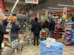 “Dopo che l’emergenza era esplosa e ormai chiara a tutti, i primi giorni sono stati terribili: la gente era impazzita, i carrelli erano strapieni, abbiamo lavorato come si lavora la settimana di Natale”, dichiara una cassiera marsicana che preferisce rimanere anonima. “Il cliente, munito di mascherina e guanti e rispettando le giuste distanze, fa la spesa grossa, come si suol dire, per poi ritornare dopo dieci o anche quindici giorni. Chi ha una buona e reale percezione di quello che stiamo vivendo si comporta così”.