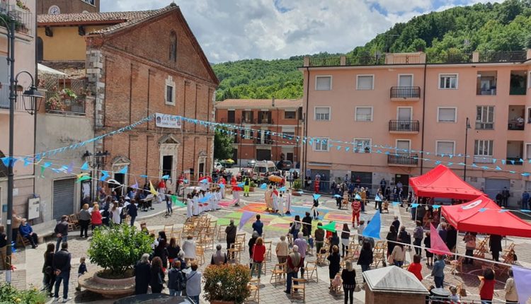 A Carsoli la Santa Messa è stata celebrata all’aperto in piazza Corradino come in molte altre realtà italiane. Ed al termine della celebrazione liturgica una piccola processione simbolica. La Pro Loco Carseoli si è comunque data da fare lavorando nottetempo per comporre qualche disegno in onore della festività più significativa per la fede cattolica.