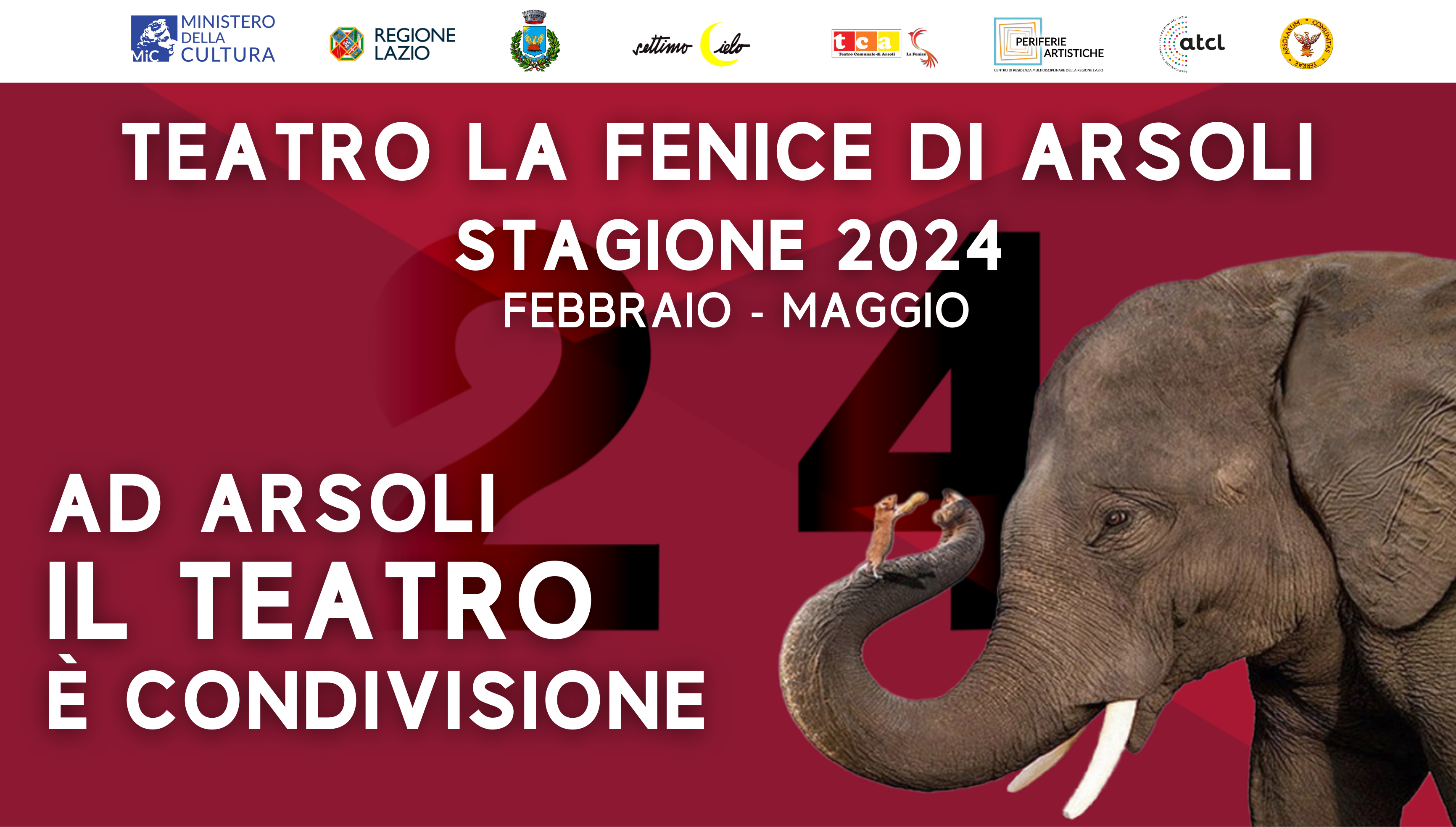 Il Teatro La Fenice di Arsoli riapre a Febbraio 2024 con un ricco programma, realizzato in collaborazione con il Circuito Regionale A.T.C.L. , a festeggiare il decennale della riapertura del Teatro con la gestione di Settimo Cielo.