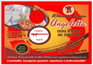 Pubbliredazionale – Nel centro urbano di Carsoli ed in prossimità della Piazza della Libertà e di tutte le principali attività produttive e servizi la forza della cucina tipica locale è Ristorante Pizzeria “Angeletta“. Alla direzione Angela Palombo, presidente Fisar sommelier professionista, da sempre appassionata di buona cucina e ristorazione. Molto nota per il suo tradizionale “Pentolo di Angeletta”, con cui in forma itinerante vengono preparati piatti squisiti espressi. “Il nostro obiettivo – spiega Angela Palombo – nel nostro semplice ed accogliente ristorante è deliziare i palati dei nostri clienti con l’utilizzo di materie prime a chilometri zero, tutte rigorosamente selezionate per portare in tavola il buongusto e la convivialità. Nel settore pizzeria gli impasti – spiega ancora Angela – sono leggerissimi, utilizziamo farine di grano solina ed altre tipologie tutte pregiate e l’abbinamento con i condimenti ci consente di servire un prodotto unico per gusto e leggerezza”. Un motivo in più dunque per pensare ad una cena di Natale tra amici e colleghi al Ristorante da Angeletta, nella suggestiva cornice dei colori di sala appena ristrutturata in un ambiente caldo e molto accogliente.