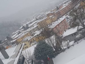 La Frigida Carseoli, flash neve per una vista splendida sulla città. Scuole chiuse oggi e domani