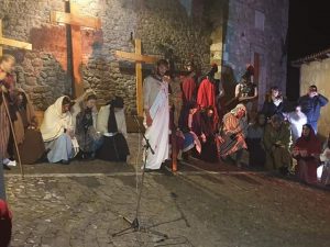 Carsoli – Si è svolta nella serata di ieri, la rappresentazione della Via Crucis nella suggestiva cornice del centro storico di Carsoli. L’organizzazione curata dalla Pro Loco di Carsoli, è riuscita ad emozionare con un percorso intriso di fede e devozione popolare. Dalla piazza delle Erbe, una trasposizione in chiave moderna ha introdotto la Via Crucis, che per tappe ha condotto fino a Largo del Forte, ai piedi dell’antica fortezza dove è stata sceneggiata la Crocifissione di N.S. Gesù Cristo. Tutto è avvenuto con molto realismo, e gli interpreti, in tutti i ruoli hanno dato il meglio di loro stessi. Bravi tutti. Il Sindaco Velia Nazzarro ha rivolto apprezzamenti per l’evento: “ancora una volta il nostro centro storico è protagonista di un percorso di rivalutazione e di coinvolgimento di tutta la comunità”.