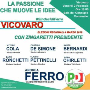 Vicovaro – Venerdì 2 febbraio all’Aula Consiliare si è tenuto l’incontro tra i Sindaci di Ferro e Andrea Ferro, il candidato locale alla Regione Lazio.