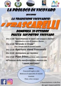Vicovaro – Domenica 30 ottobre 2022, in Piazza San Pietro un nuovo evento della Pro Loco di Vicovaro, che riscopre la tradizione vicovarese “I frascarelli”, un piatto tipico locale.
