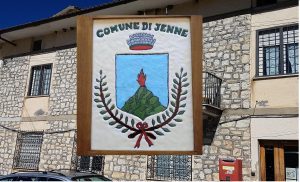 Jenne – Lo stemma ufficiale del Comune di Jenne porta con sè tutto il fascino di una storia che ha caratterizzato questo bellissimo borgo. I colori sono vivaci, ma cerchiamo di capire bene cosa rappresenta e perchè è così. A prima vista, lo sfondo azzurro (che può essere identificato con il cielo), racchiude una sorta di apparente vulcano dal quale fuoriesce una fiamma di fuoco. Ma si tratta solo di apparenza, infatti Jenne nulla ha a che vedere con la vulcanologia.