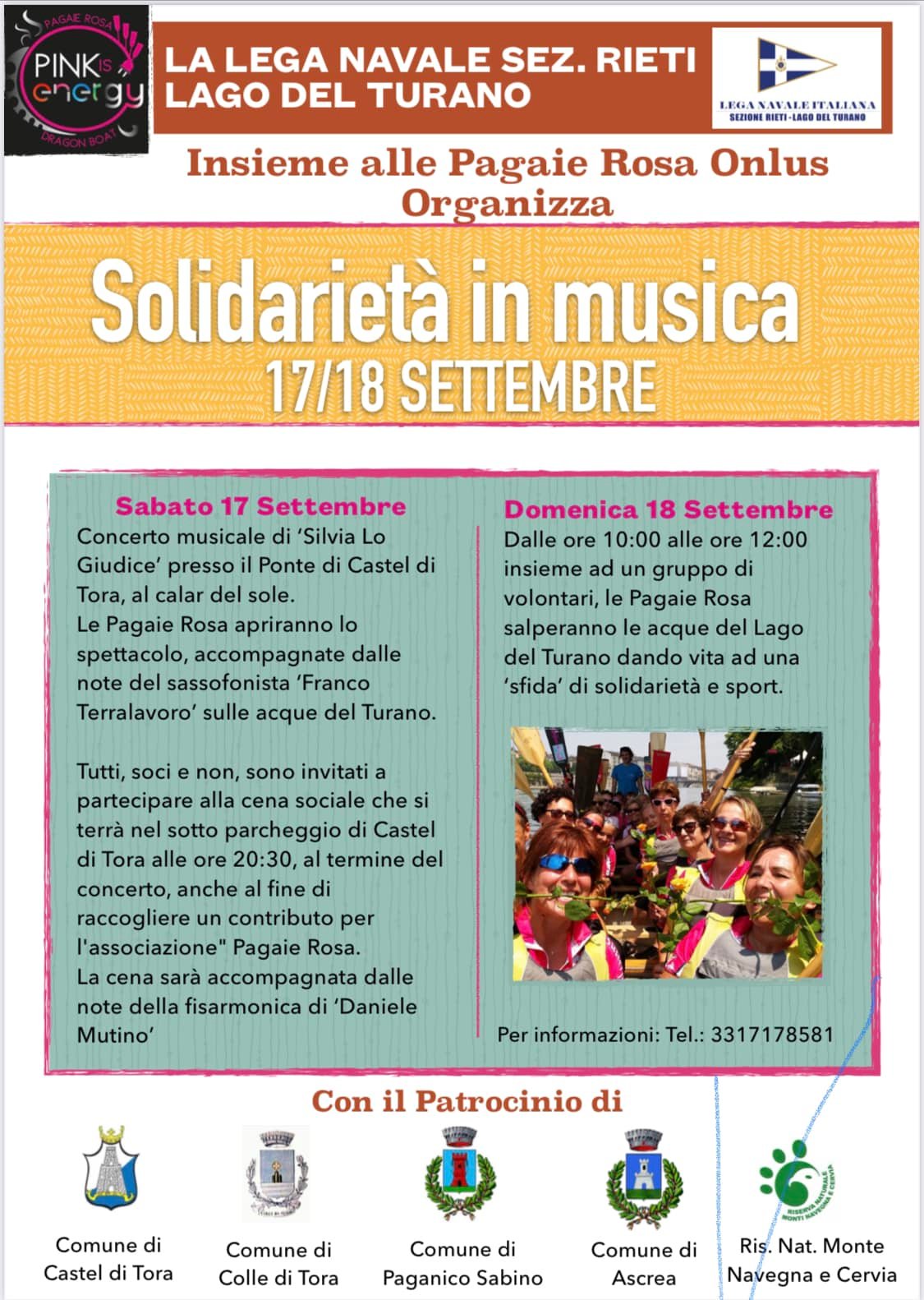 CASTEL DI TORA – La Lega Navale sezione di Rieti Lago del Turano ha organizzato una interessante duegiorni dedicata alla musica ed alla solidarietà. L’evento è patrocinato dalla Riserva Naturale dei Monti Navegna e Cervia, e dai comuni di Castel Di Tora, Colle di Tora, Paganico Sabino ed Ascrea.