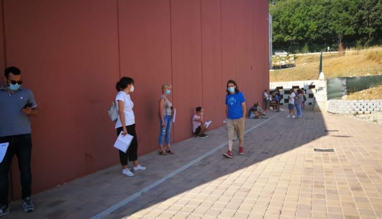 L’AQUILA – Ore di fila per chi vuole vaccinarsi a L’Aquila. È successo oggi al centro vaccinale di San Vittorino, dove gli orari assegnati tramite la prenotazione non sono stati rispettati ma, una volta arrivati, agli aspiranti immunizzati è stato chiesto di mettersi in fila davanti all’ingresso, prendendo un numeretto. Operazione effettuata, con il foglio che recita: utenti in coda 96. E il termometro segna 35 gradi.