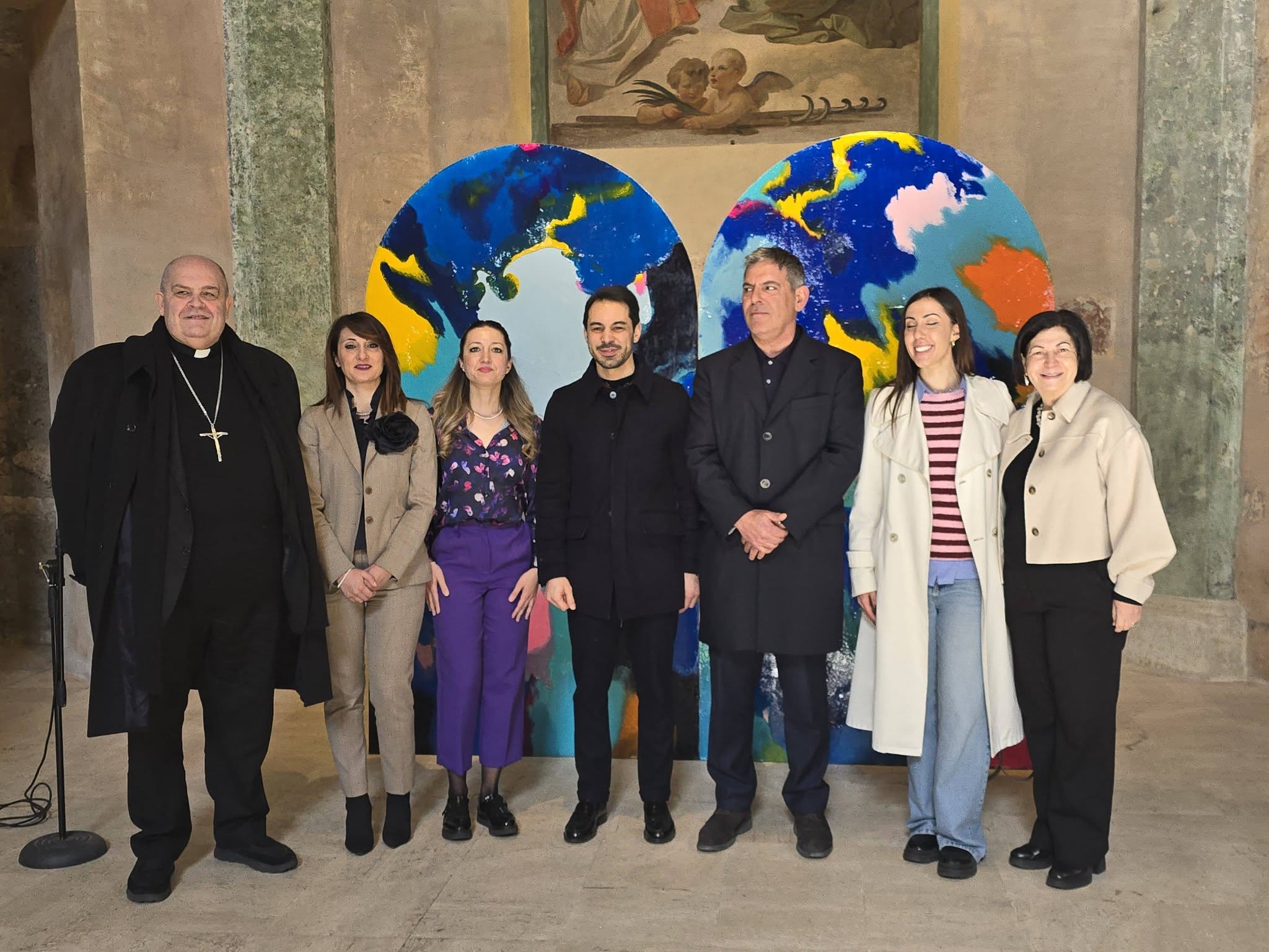 Le opere, collocate nello spazio sacro della chiesa, dialogano con la luce e con la memoria del luogo, trovando il loro fulcro nell’Abside Maggiore, dove è esposta l’opera principale da cui la mostra prende il titolo. Un incontro profondo tra arte contemporanea e dimensione spirituale che ha coinvolto intensamente il pubblico presente.