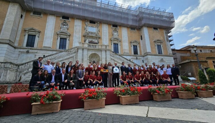 ROMA – Una Lupa per suggellare il trionfo delle ‘lupe’. Dopo il trionfo che lo scorso 29 aprile le ha viste portare nella Capitale il primo scudetto della loro storia, le campionesse della AS Roma Femminile sono state premiate oggi dal sindaco Roberto Gualtieri in una piazza del Campidoglio vestita a festa. Per loro il massimo riconoscimento conferito dalla città, la Lupa capitolina consegnata nelle mani del capitano Elisa Bartoli, romana e romanista, e le medaglie celebrative di Roma Capitale. E un altro regalo in arrivo per settembre, il rinnovato campo del Tre Fontane pronto a ospitare finalmente le competizioni europee della Uefa Women’s Champions League, la massima competizione calcistica europea femminile per club a cui le giallorosse parteciperanno per la seconda stagione consecutiva.