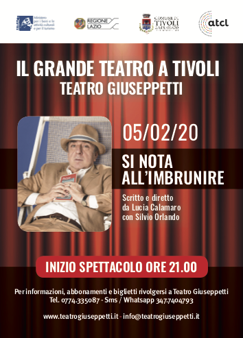 Tivoli – C’è grande attesa per questa sera Mercoledì 05 febbraio 2020 alle ore 21:00, presso il Teatro Giuseppetti di Tivoli, per la messa  in scena dello spettacolo “Si nota all’imbrunire” scritto e diretto da Lucia Calamaro con Silvio Orlando.