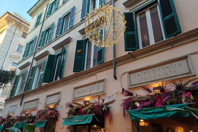 Quando si parla di intrattenimento, le insegne diventano eleganti, teatrali, quasi vanitose. Corsivi raffinati, marmo, putti in bronzo. Dal Capranichetta al Nuovo Quirinetta, progettato da Marcello Piacentini, fino alla lanterna unica che ancora oggi osserva i passanti: luoghi che hanno cambiato funzione, ma non identità.