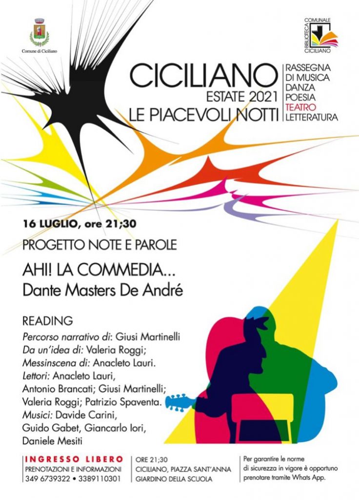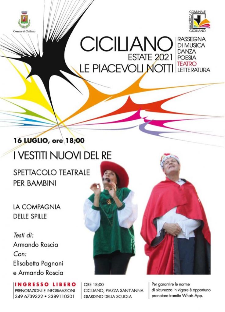 Ciciliano – Oggi, 16 luglio, comincia la rassegna degli eventi “Le piacevoli Notti di Ciciliano 2021”, divenuto ormai appuntamento attesissimo e capace di regalare ogni anno grandi emozioni. La pandemia non ha fermato la Biblioteca comunale di Ciciliano, responsabile dell’organizzazione, che ha riservato per questa nuova estate degli eventi unici e imperdibili.