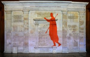 Tra le righe scolpite nel marmo è narrata la storia di Roma che tutti studiano sui libri scolastici e, spesso, al visitatore frettoloso sfugge la menzione di personaggi universalmente noti, Romolo, Tarquinio il Superbo, Giulio Cesare, Augusto, al pari di famose battaglie e importanti conquiste.