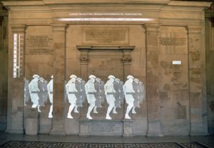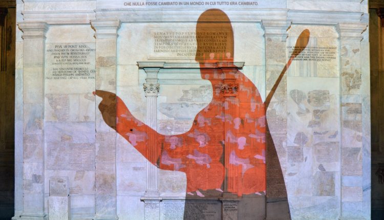 Attraverso il videomapping, la grafica e un commento sonoro, l’esposizione multimediale offre al pubblico gli strumenti per rintracciare sulla parete elementi che, seppure presenti all’interno del proprio bagaglio conoscitivo sulla storia di Roma, non ci si aspetta di ritrovare in quella sede e in quelle forme.