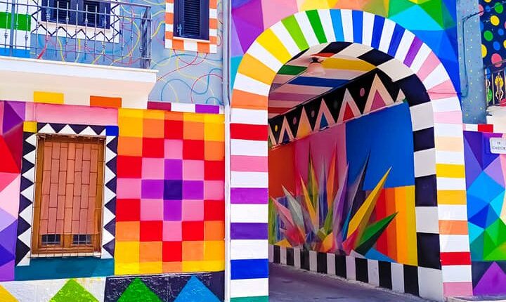 Borgo Universo è il museo a cielo aperto di Aielli, un paese della Provincia dell’Aquila alle pendici del Monte Sirente, nel cuore del Parco Naturale Regionale del Sirente-Velino. Lungo le strade del Borgo si possono ammirare 35 murales dei più celebri street artist del mondo, come Okuda, Millo, Zamoc, Alleg, Matlakas, Agostino Iacurci, e molti altri. Tra questi, 3 murales dedicati alla letteratura, il più celebre quello che riproduce tutte le pagine di “Fontamara”, l’opera dello scrittore marsicano Ignazio Silone legata a questa terra bellissima e tormentata.