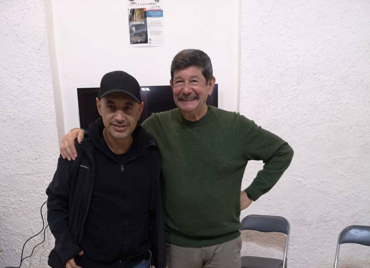 La serata si è svolta in un clima di ascolto autentico, come raramente accade: libri sul tavolo, parole che circolano senza filtri, gente che ascolta davvero. Al dialogo con l’autore hanno partecipato anche Antonella Finucci e Valeria Valeri dell’associazione Ticket to Ride, con cui si è discusso dei grandi temi del nostro tempo — conflitti, sicurezza, paura e desiderio — in un confronto che ha legato il piano narrativo di Lithium 24 alle inquietudini del presente.