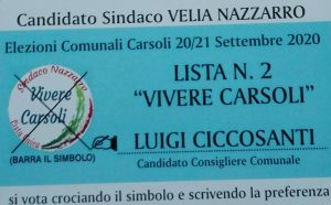Elezione diretta del Sindaco e del Consiglio Comunale di Carsoli 20 e 21 Settembre 2020
