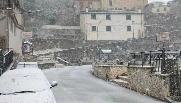 CARSOLI – L’ultima neve di primavera, come il titolo di un noto film del 1973 e semprechè sia l’ultima. Risveglio imbiancato in molti borghi del Lazio e dell’Abruzzo, temperature pressochè intorno allo zero e clima oltremodo rigido, peggio di quanto era nelle previsioni. Il ciclone di ritorno stenta a restituire la primavera estiva che ci aveva regalato giornate stupende. Verso il fine settimana previso un rialzo termico, ma dubbi sul ponte del primo maggio.