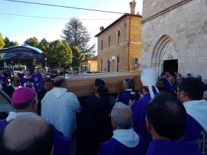 L’ultimo saluto a Monsignor Santucci, bagno di folla con i gonfaloni di Carsoli, Magliano e Trivento