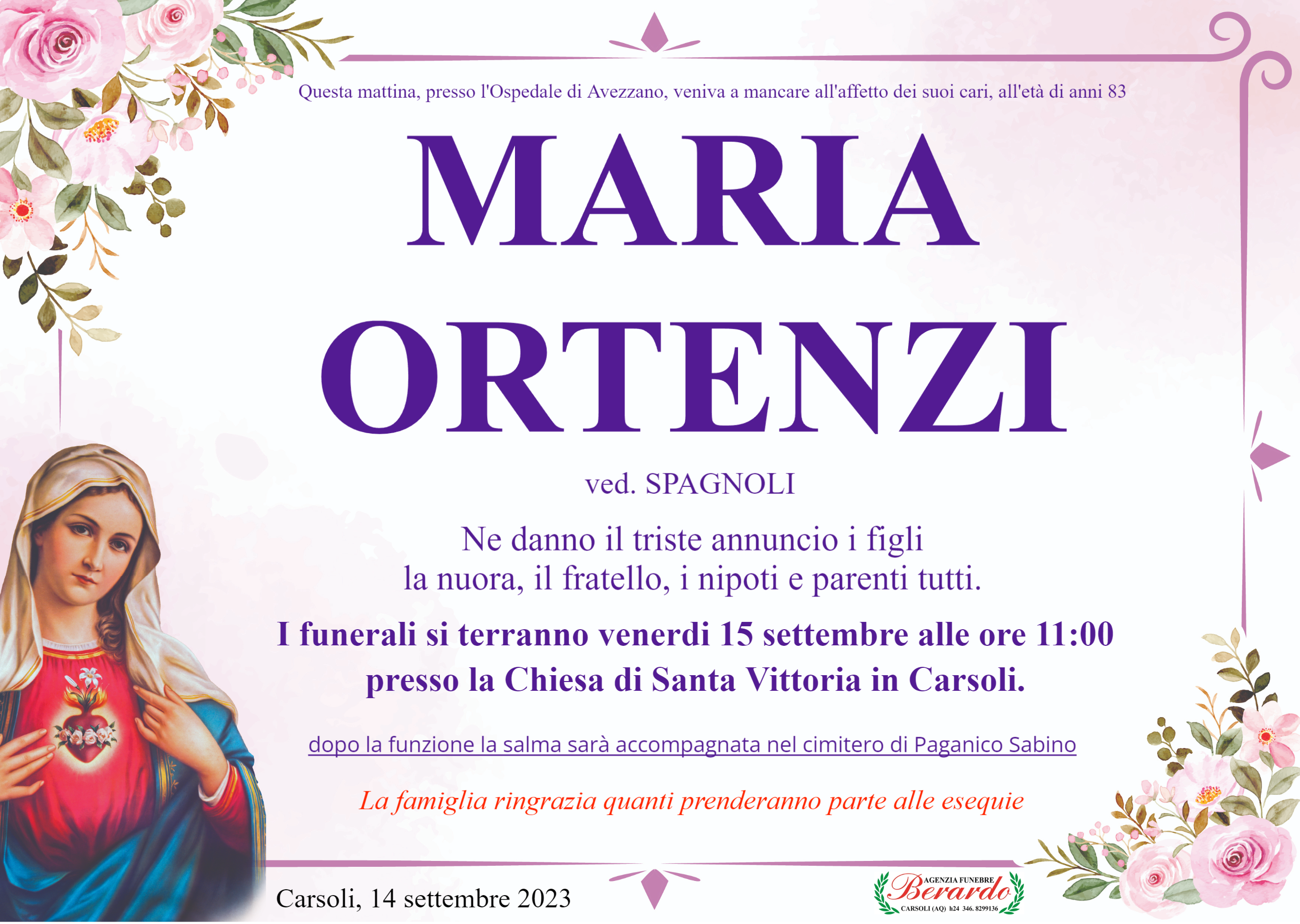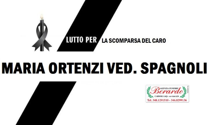 Lutto a Carsoli e Paganico Sabino per la scomparsa di Maria Ortenzi ved. Spagnoli