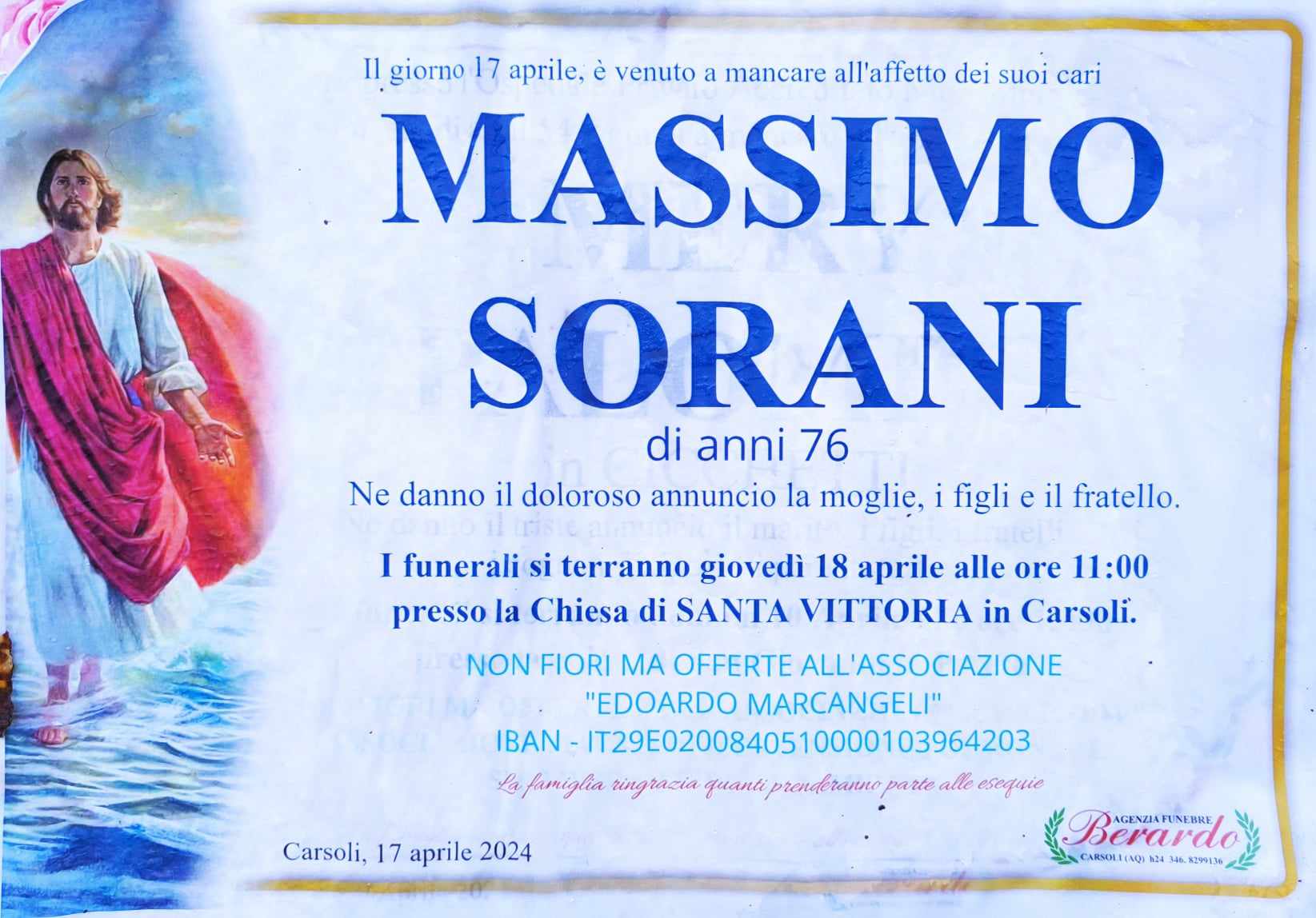 Lutto a Carsoli per la scomparsa del caro Massimo Sorani