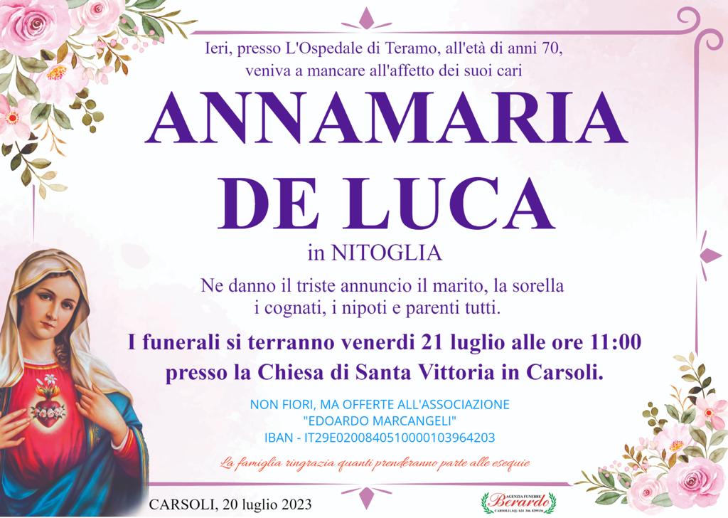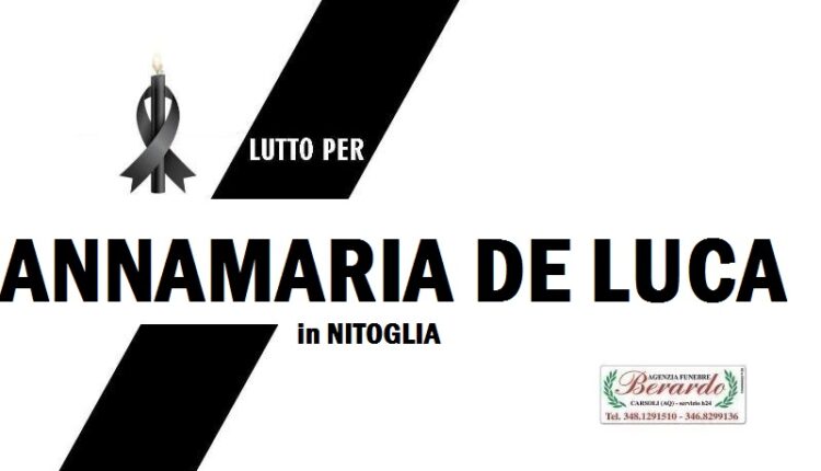 Lutto a Carsoli per la scomparsa della cara Annamaria De Luca in Nitoglia
