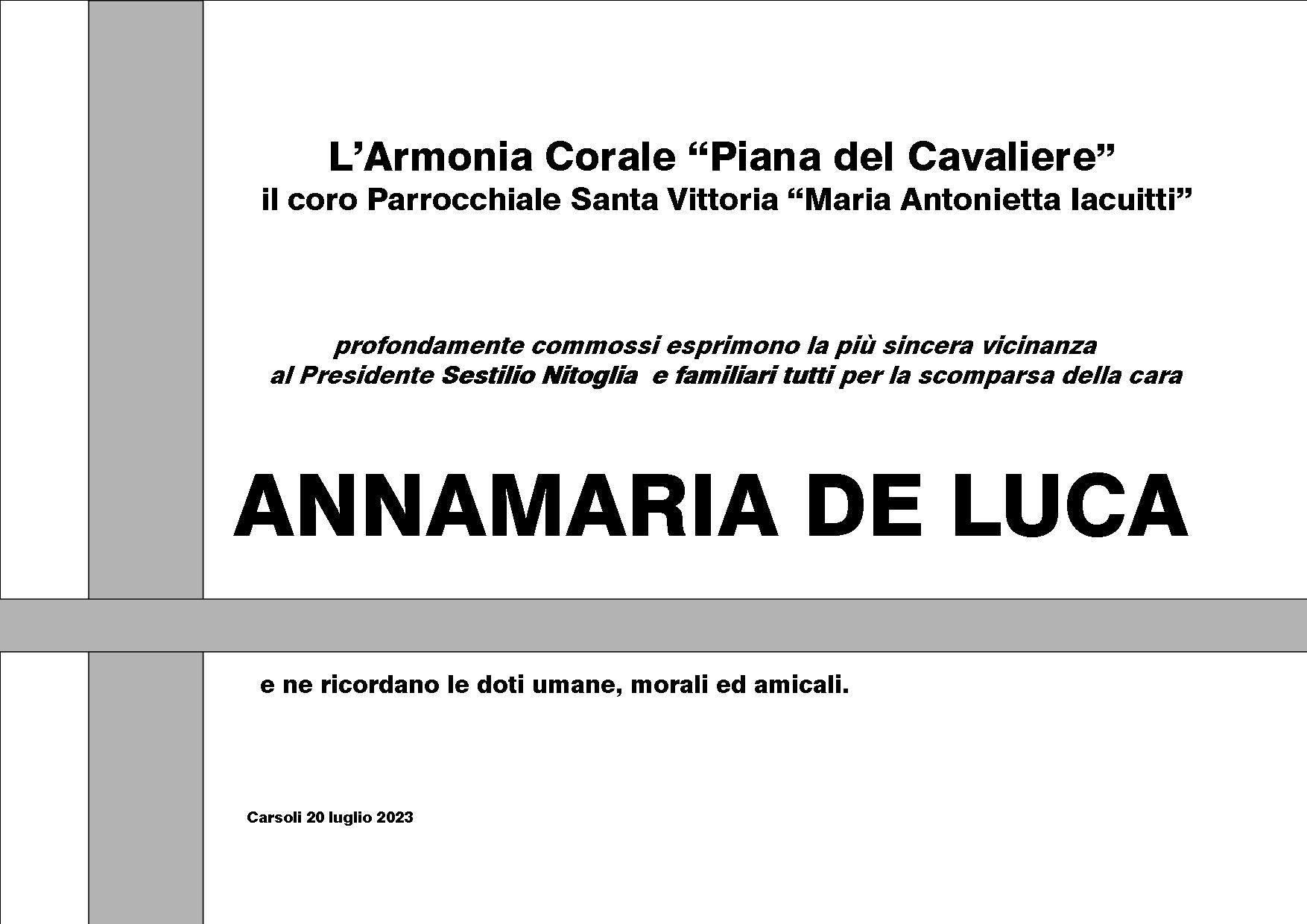 Al marito Sestilio Nitoglia, alla sorella Prof.ssa Ester De Luca con il marito prof. Angelo Bernardini, ai nipoti e familiari tutti la più sentita vicinanza della nostra redazione.