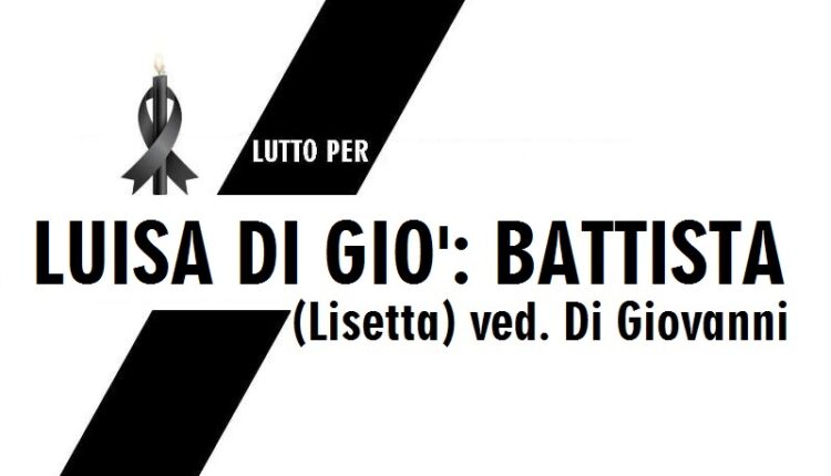 Questa mattina presso la propria abitazione in Carsoli è mancata all’affetto dei suoi cari all’età di anni 93 la cara LUISA DI GIO’: BATTISTA (Lisetta) ved. Di Giovanni.