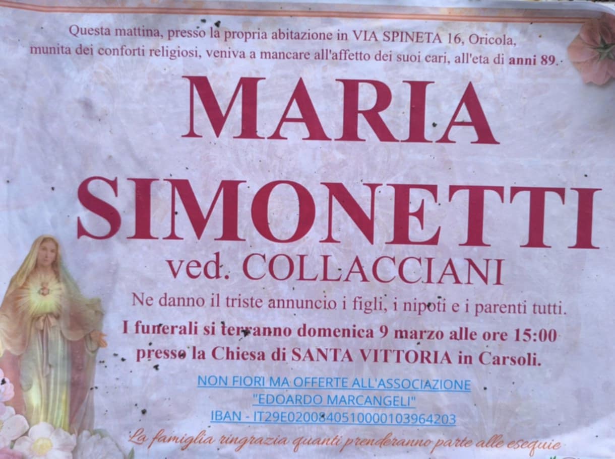 Lutto a Carsoli per la scomparsa della cara Maria Simonetti ved. Collacciani