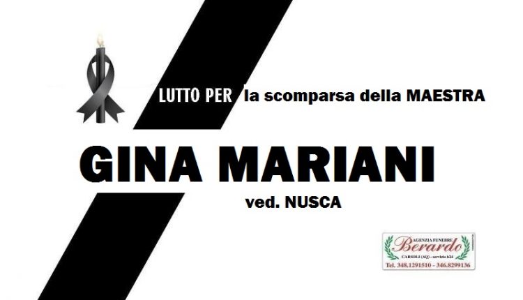 Lutto a Carsoli per la scomparsa della Maestra Gina Mariani ved. Nusca