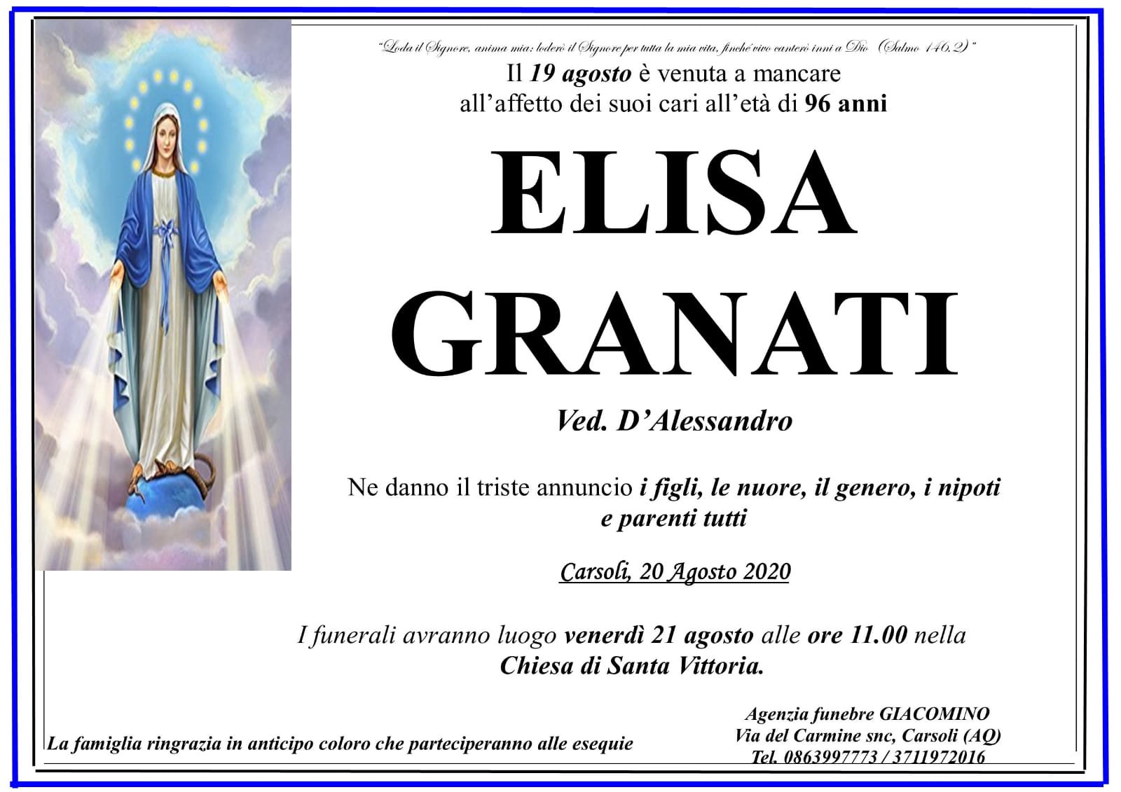 Lutto a Carsoli per la scomparsa di Elisa Granati ved. D’Alessandro