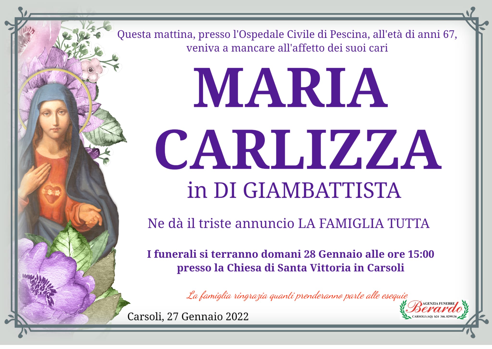 Lutto a Carsoli per la scomparsa di Maria Carlizza in Di Giambattista