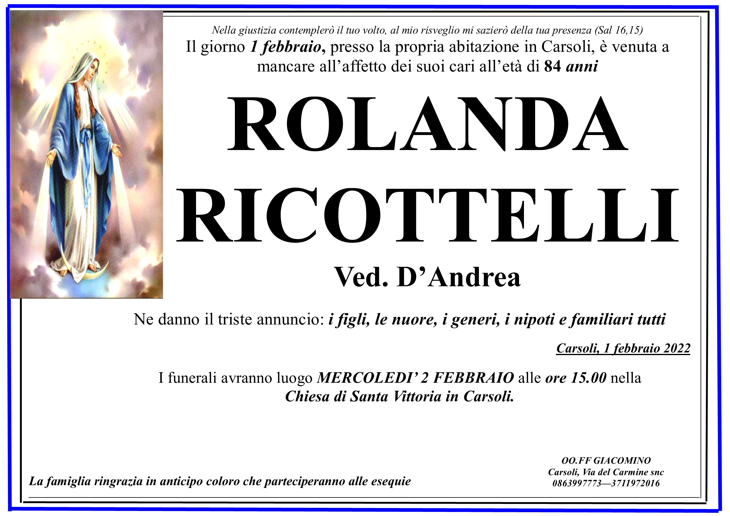 Lutto a Carsoli per la scomparsa di Rolanda Ricottelli ved. D’Andrea