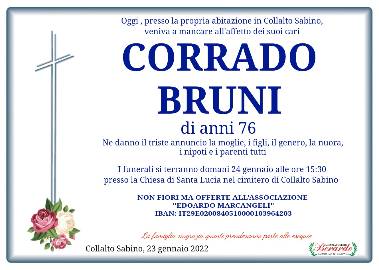 L’Agenzia Funebre Berardo annuncia la tristia: