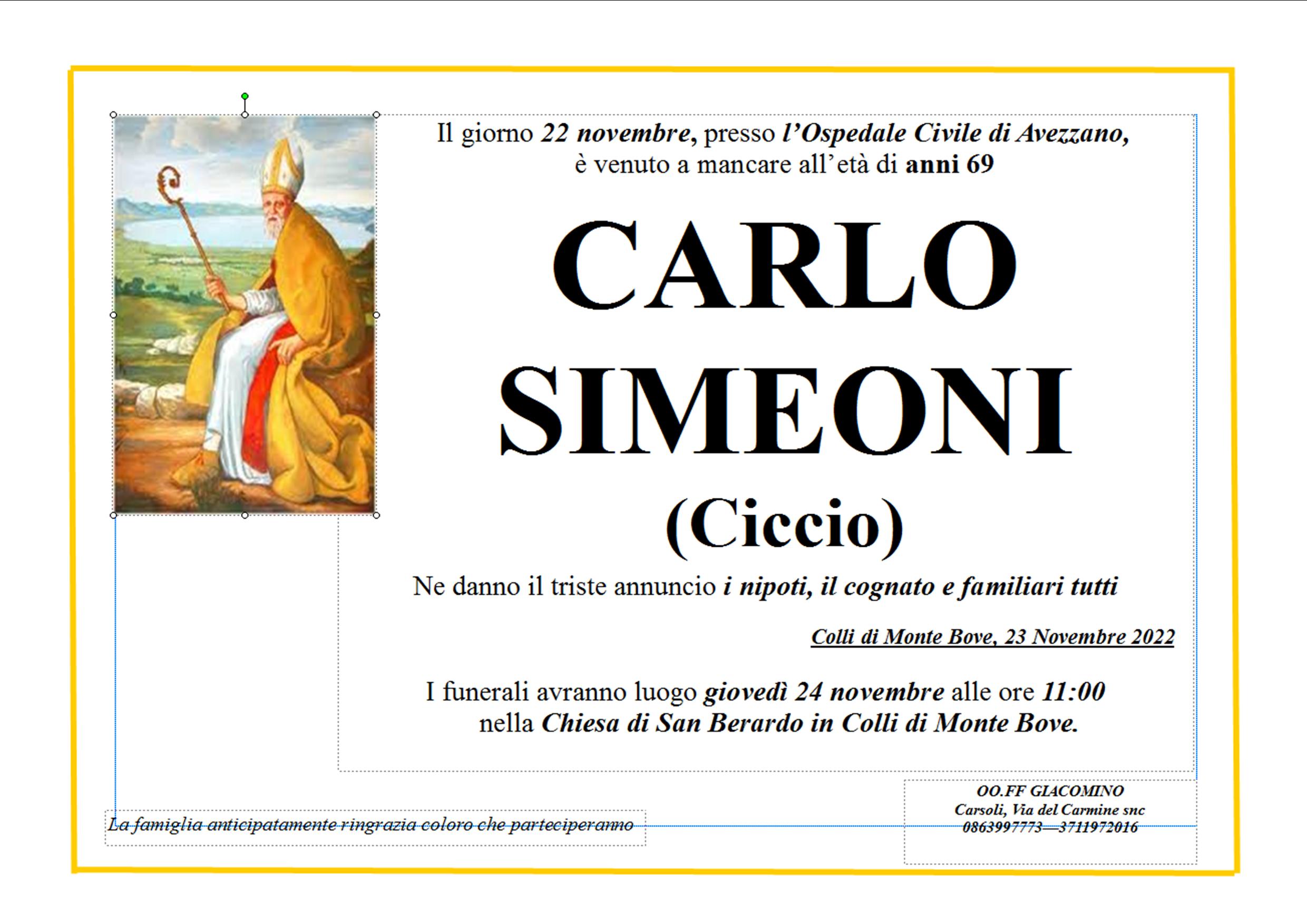 Lutto a Colli di Monte Bove per la scomparsa di Carlo Simeoni (Ciccio)