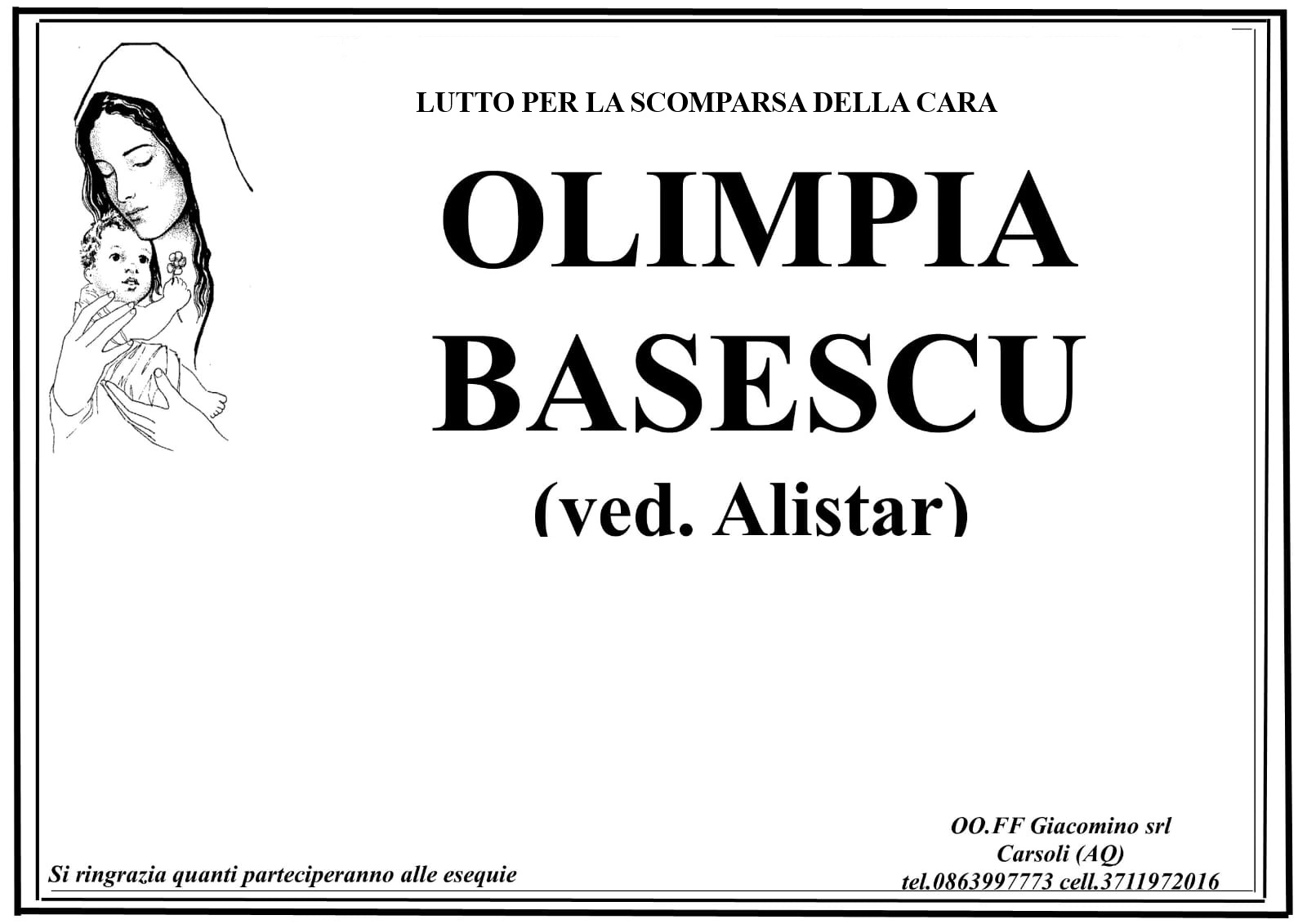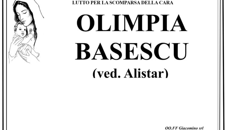 Lutto per la scomparsa della cara Olimpia Basescu ved. Alistar