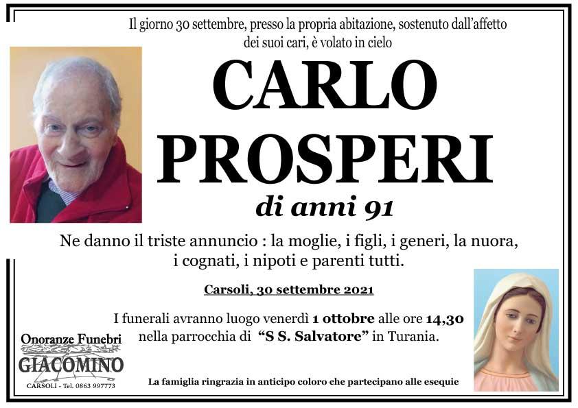 Il signor Carlo Prosperi è stato un esempio di rettitudine, disponibilità verso il prossimo, e testimone degli autentici valori della fede cristiana.