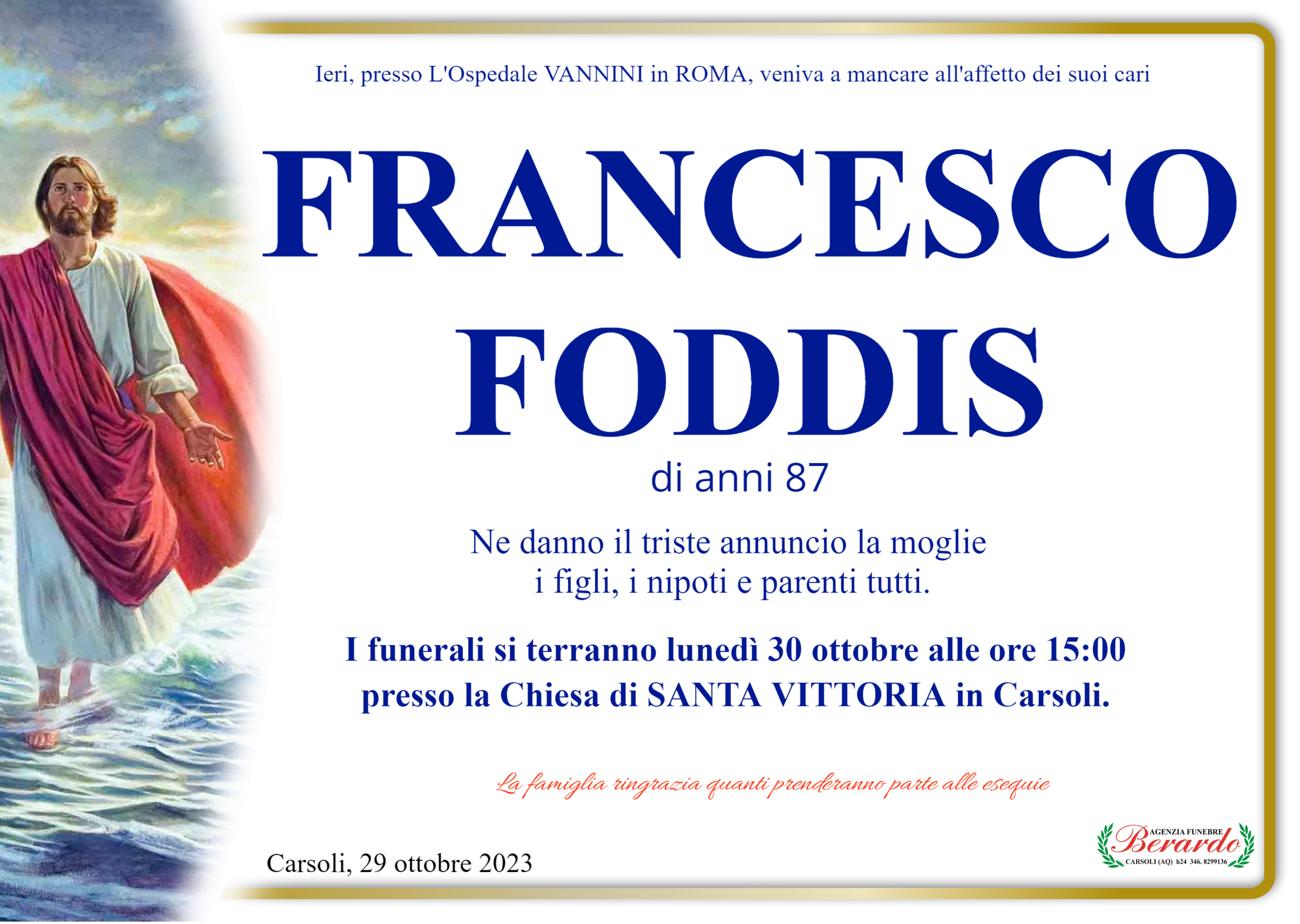 -Franco Foddis è stata una gran brava persona. Una vita trascorsa all’insegna del lavoro, dell’onestà e al valore della famiglia e dell’amicizia. Sempre sorridente educato e cordiale con tutti. Si è ora ricongiunto all’amato figlio Gianni che giovanissimo venne strappato alla vita.  Alla moglie Caterina ai figli e parenti tutti, le più partecipate condoglianze della nostra redazione.