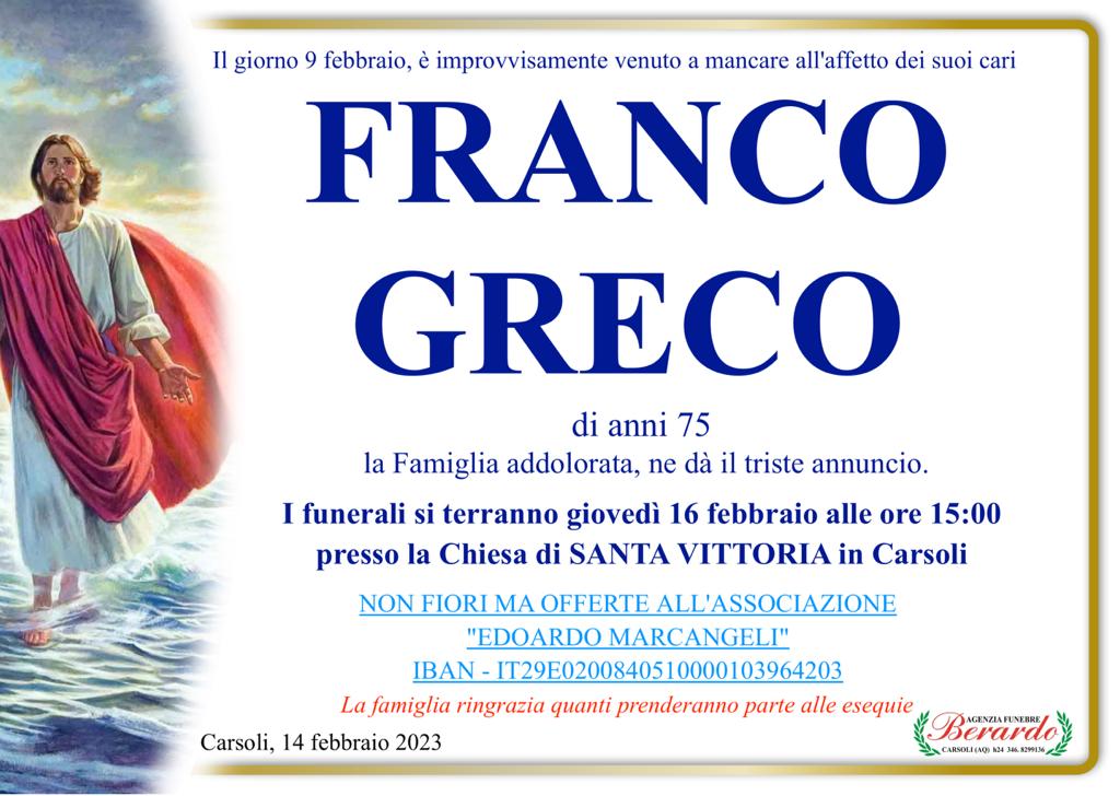 Franco Greco sarà ricordato per essere stata una persona veramente per bene. Un imprenditore di successo che ha saputo realizzare una azienda presso la quale moltissime persone nel corso degli anni hanno trovato la loro occupazione. Lo contraddistingueva la sobrietà, il garbo, la sua discrezione, ed il rispetto per gli altri.