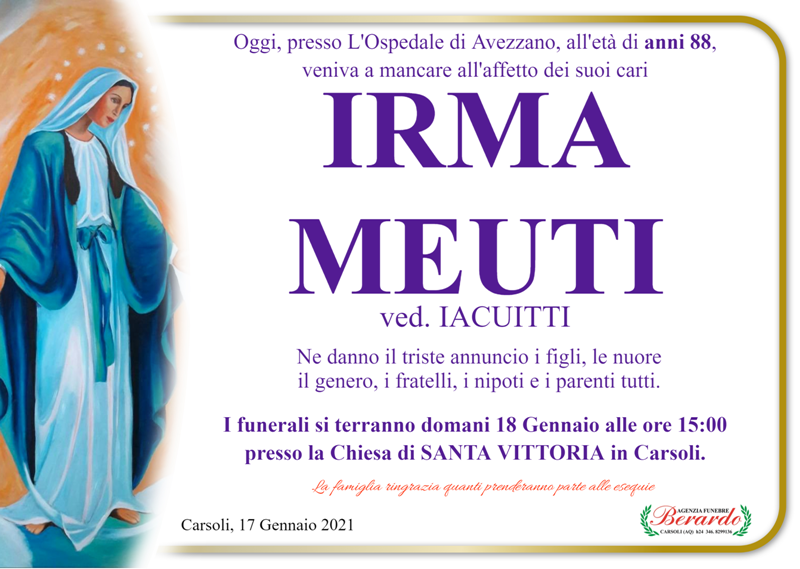 Lutto per la scomparsa di Irma Meuti ved. Iacuitti