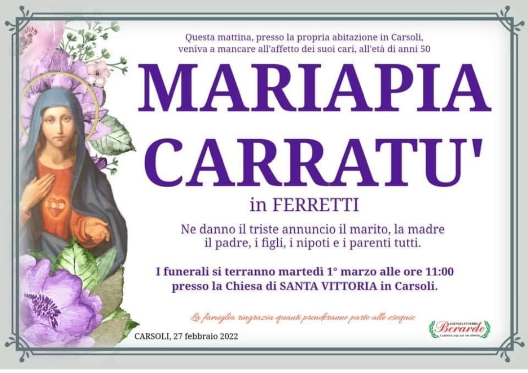 Lutto per la scomparsa di Maria Pia Carratù in Ferretti