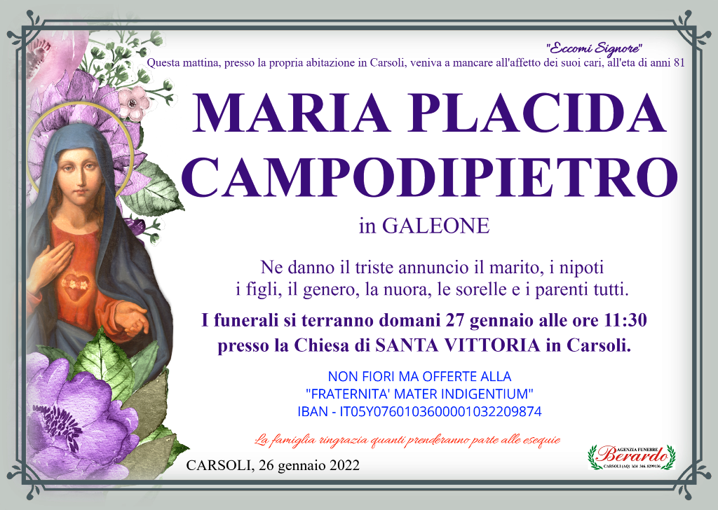 Lutto per la scomparsa di Maria Placida Campodipietro in Galeone